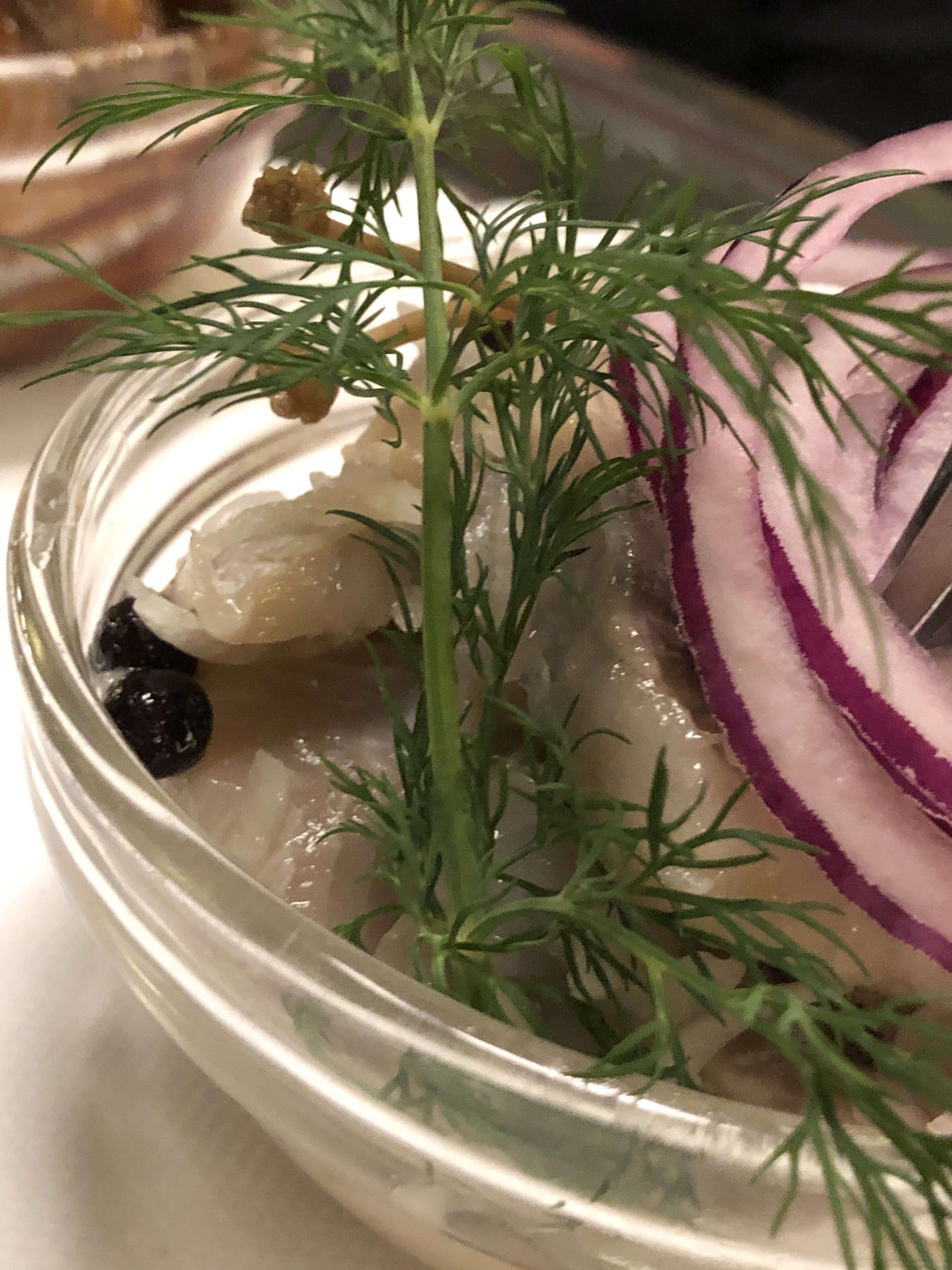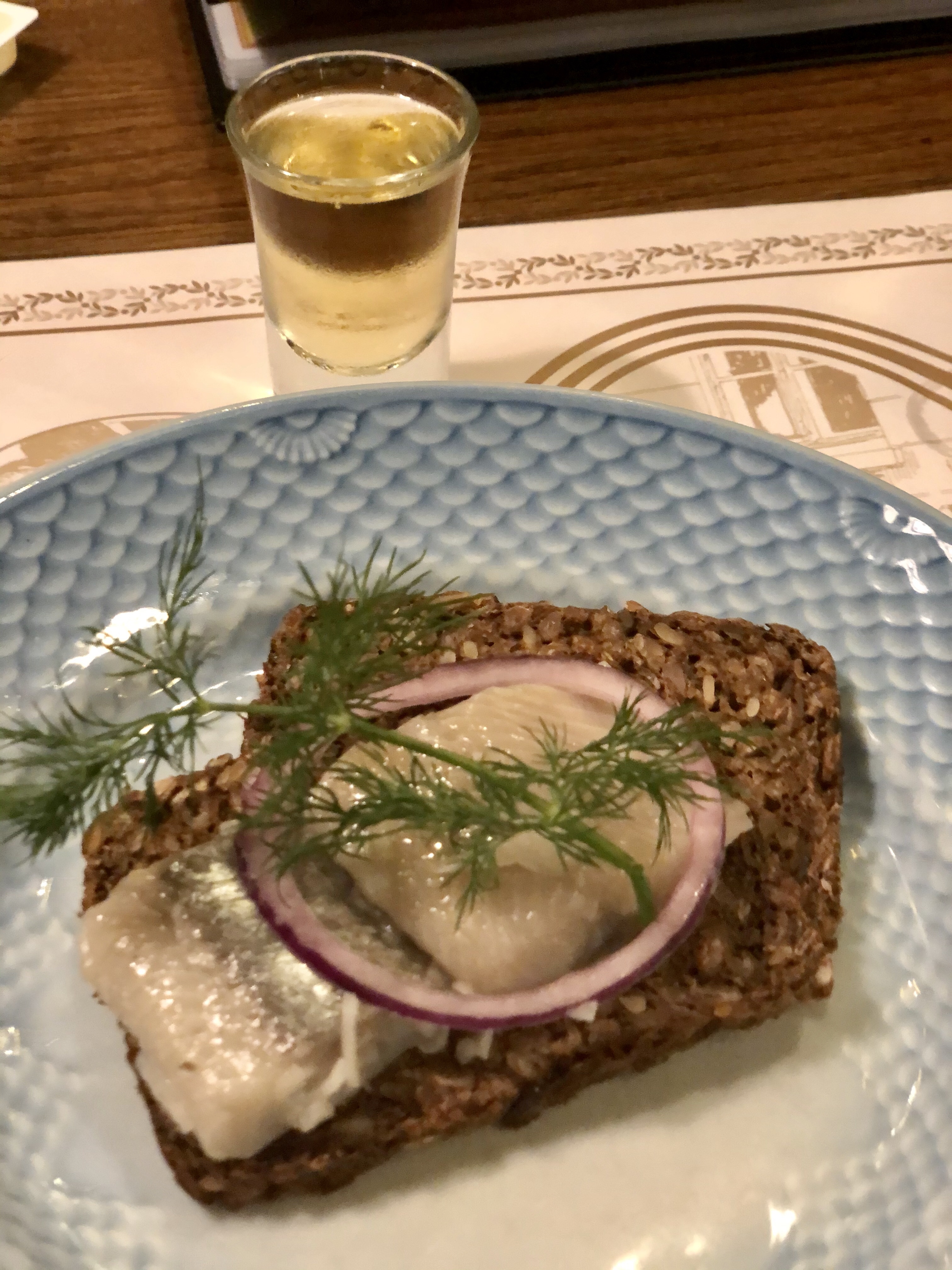 - Det Lille Apotek: We stumbled across this restaurant and it turned out to be the oldest restaurant in Copenhagen. It was the perfect place to enjoy Danish cuisine. We went for a platter which was around £25 per person. It was a feast and we could not finish it. The platter had Traditional Herring, Battered Plaice, Warm Roast Pork, Meatballs, Liver pate, all served with fresh Rye and white bread. It was worth every penny. I enjoyed the Herring with a shot of Snaps to sip on. This is Danish tradition and though the Snaps was strong, it went really well with the oily Herring. We also ticked off a lot of the traditional danish food.