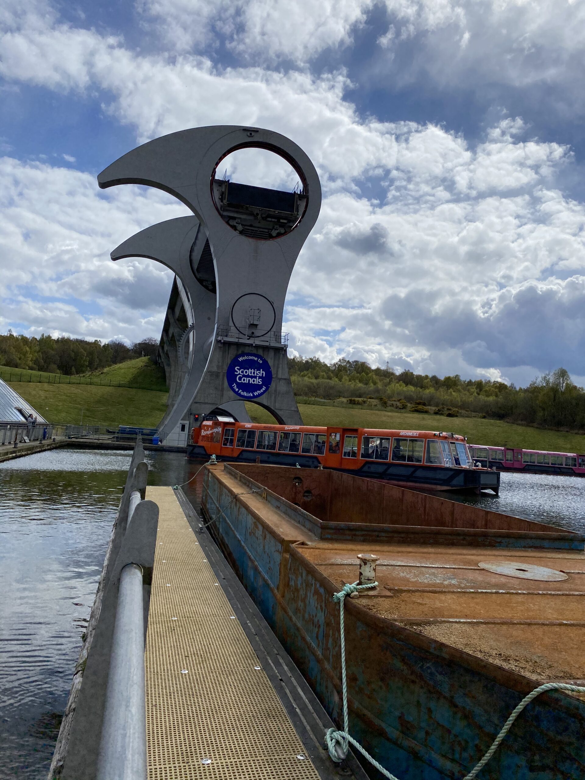 We had pre booked tickets for the original tour on the Falkirk Wheel , the worlds first rotating boat lift. Tickets cost £13.50 each for adults. It links two canals on the Scottish waterways to each other. One which is 27 metres from ground level. The engineering is amazing and the model of the wheel was built with lego. The boat travels at 4 miles an hour and takes an hour to go up, across the tunnel and turn around before taking you back down.
